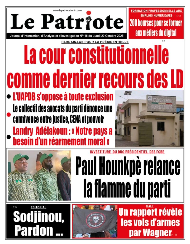 L’Unité d’Actions Patriotiques de la Diaspora Béninoise (UAPDB) exprime ses plus vives préoccupations, sa totale indignation et sa ferme condamnation face aux manœuvres du pouvoir de Patrice Talon visant, une fois encore, à opérer des exclusions du processus électoral au Bénin, et particulièrement du parti Les Démocrates (LD), dans la perspective de l’élection présidentielle de 2026.